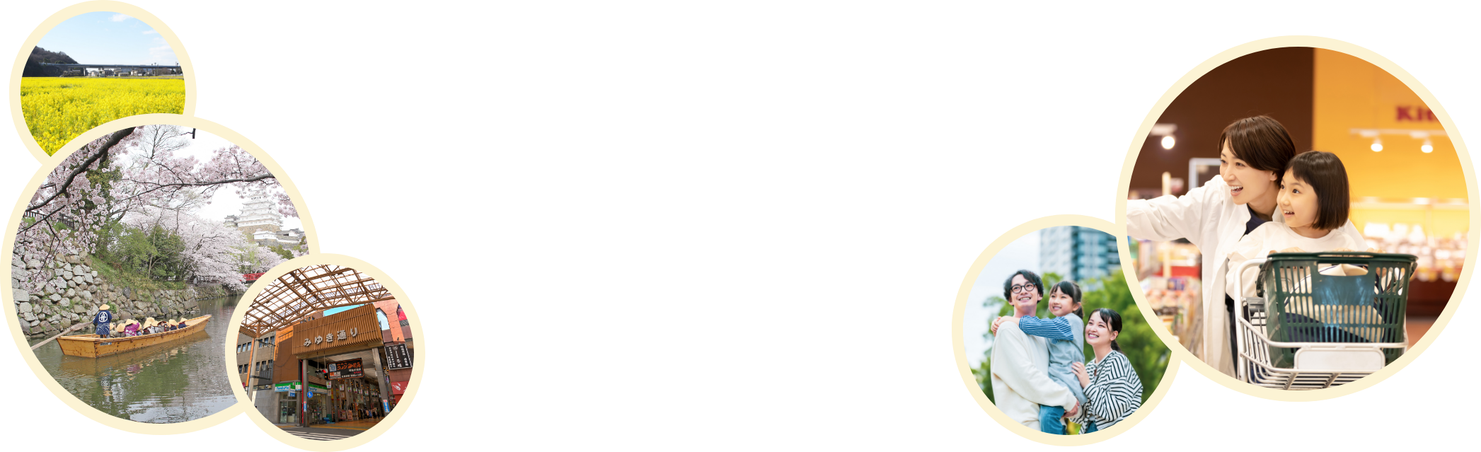 交通の便に優れ、東部は高砂市・加古川市・加西市、西部はたつの市などの隣接する市とともに、古くから播磨地域の発展を遂げてきました。市内最大級の公園やテーマパーク、身近な自然など子育てにも人気のエリアです。