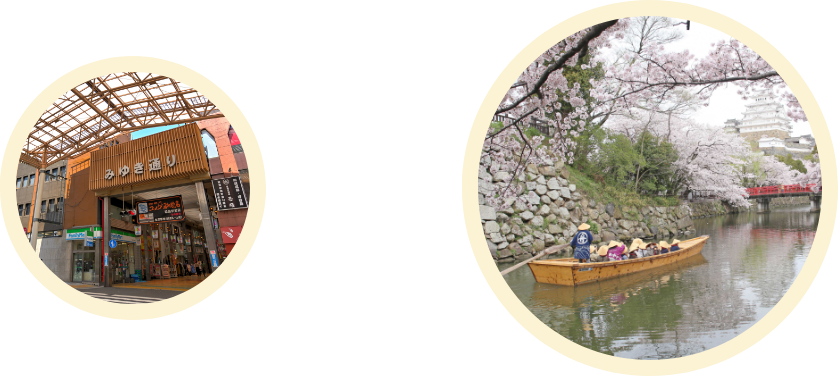 姫路駅や姫路城の周辺は、大型商業施設や百貨店、商店街などによる商業が盛んで、市の中核を担っています。